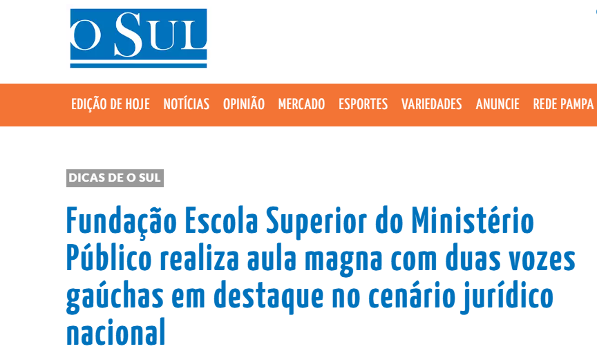 Jornal O Sul destaca Aula Magna que marca o início do ano letivo da FMP | FMP – Fundação Escola Superior do Ministério Público